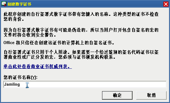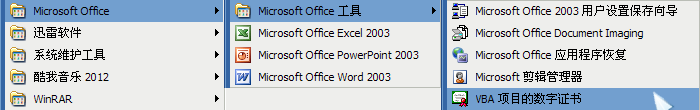 开始→程序→Microsoft Office→Microsoft Office工具→VBA项目的数字证书。